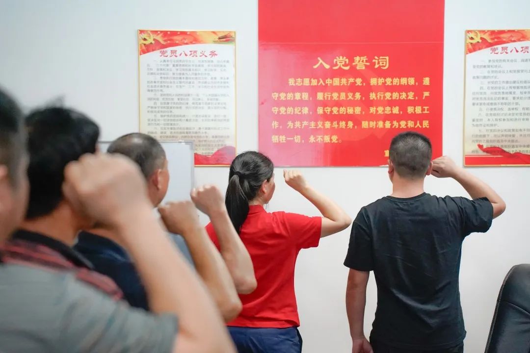 在入黨介紹人陳明同志的領誓下,李海燕同志及全體黨員宣讀了入黨誓詞。參會同志們全體站立,表情嚴肅眼神堅定,懷著為共產主義事業(yè)奮斗終身的信念,舉起右手莊嚴宣誓,錚錚誓言在大家耳邊縈繞,紅色種子在新黨員的心中悄悄埋下靜待發(fā)芽,黨的精神薪火相傳,生生不息。